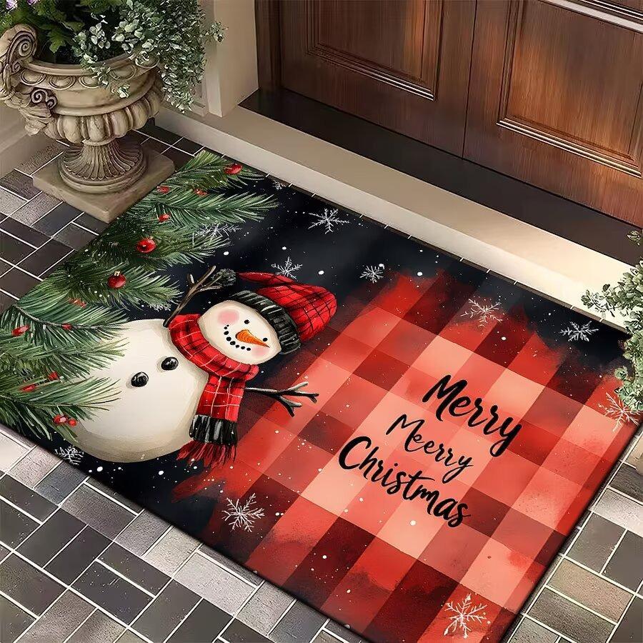 Christmas Snowman Pattern Carpet Floor and Door Pads Non Slip Soft Modern Style Living Room Entrance Bedroom Foot Mat Decoration