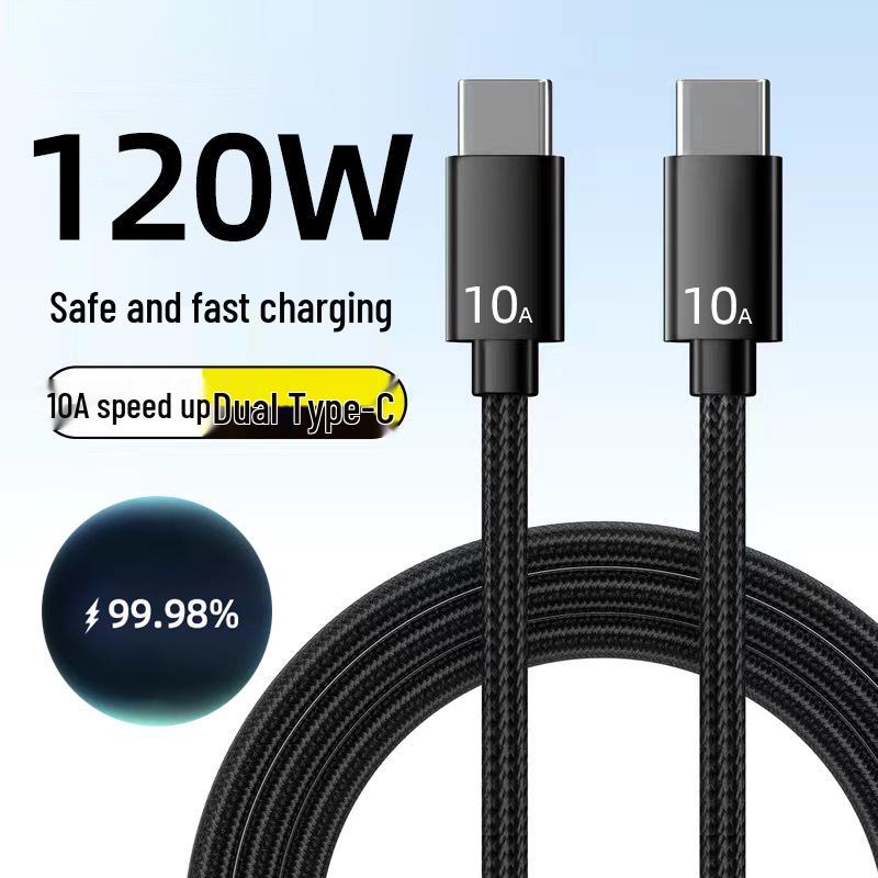 Braided Dual Type-C 120W Fast Charging Data Cable for Apple 15 & Huawei Honor 10A.