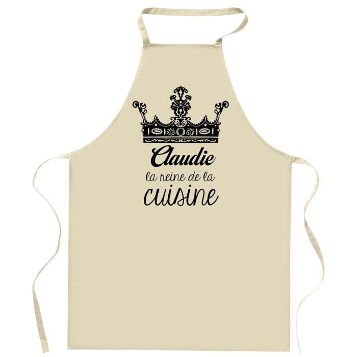 Tablier de cuisine - Claudie Reine de la Cuisine - Coton épais - Impression durable (France) - Liens ajustables