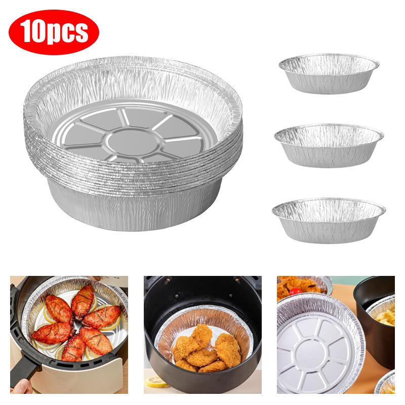 10Pcs Air Fryer Aluminum Foil Pan Food Containers Square Round Oven BBQ Tray Oil-proof Non-stick Foil Plate Kitchen Baking Tools