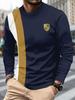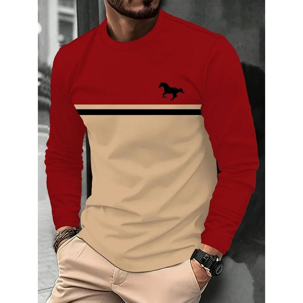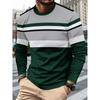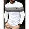 Men's Casual Long-sleeved Striped Eagle Emblem Breathable Round Neck Fashionable Comfortable Soft Breathable Minimalist Daily T-shirt