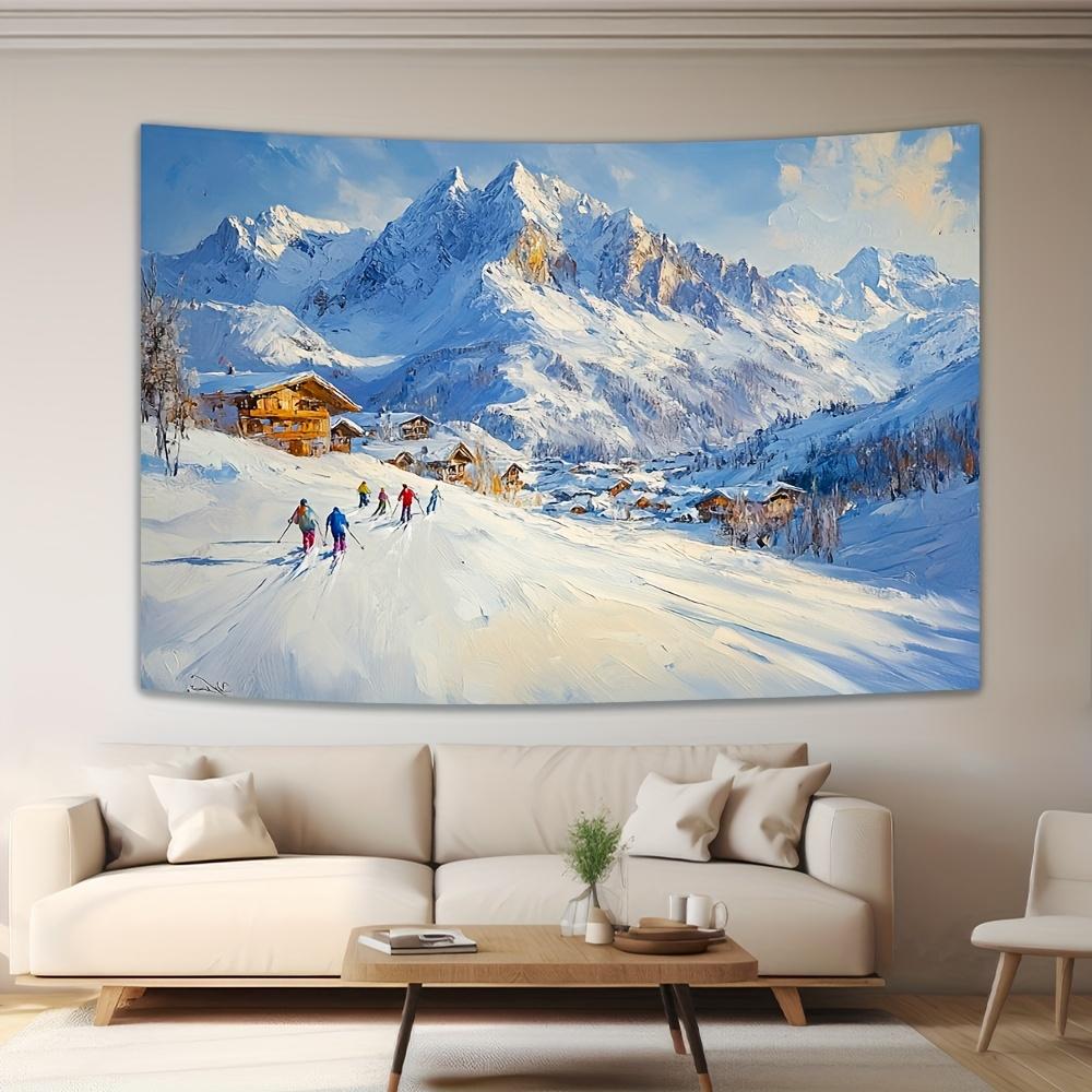 Winter skiing scene Digital printing polyester wall hanging tapestry decorative Living room bedrooms Office background gift