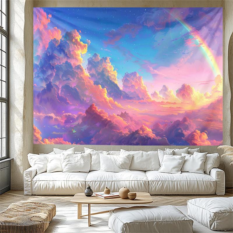 Rainbow cloud pattern Digital printing polyester wall hanging tapestry decorative Living room bedrooms Office background gift
