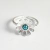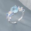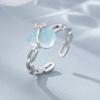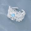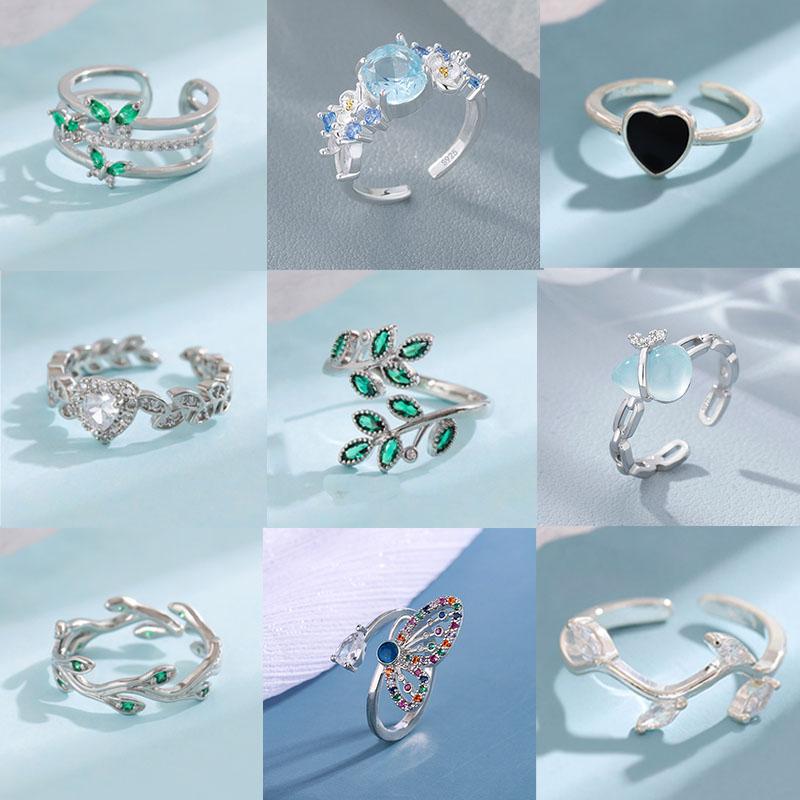 925 Sterling Silver Rings For Women Geometric Fine Jewelry Finger Adjustable Simple Blue Stone Leaf Ring For Party Birthday Gift