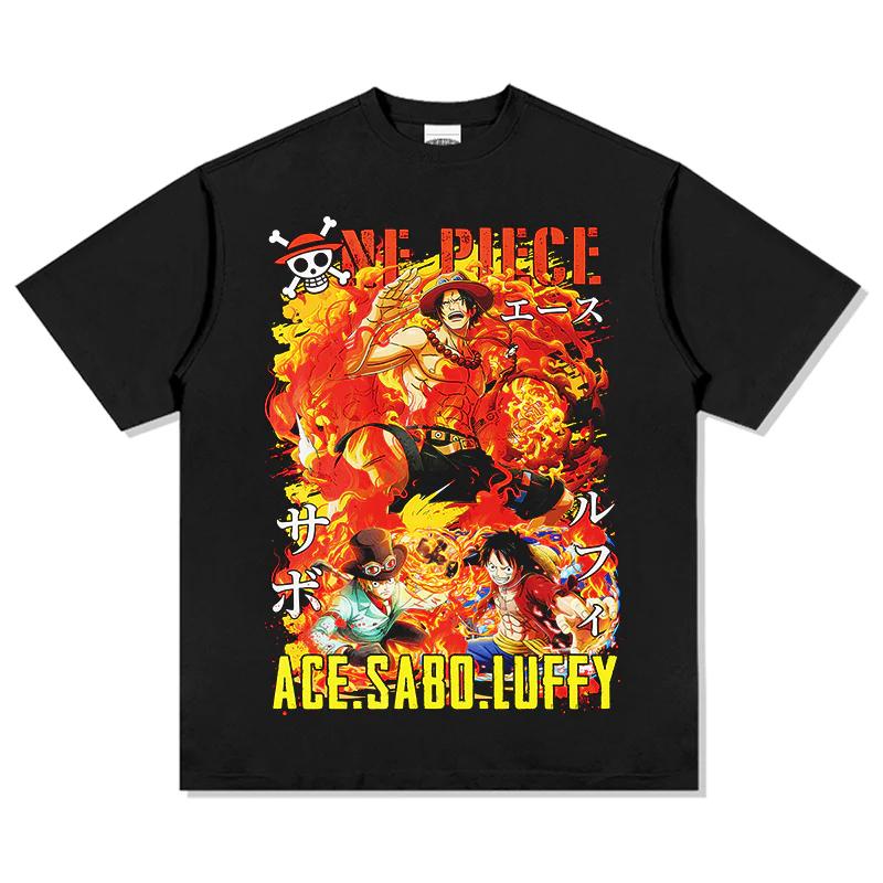 One Piece Ace Sabo Luffy TShirt Men Women Relaxed 100 Cotton Loose Fit Crew Neck Street Style Short Sleeve Graphic Tee