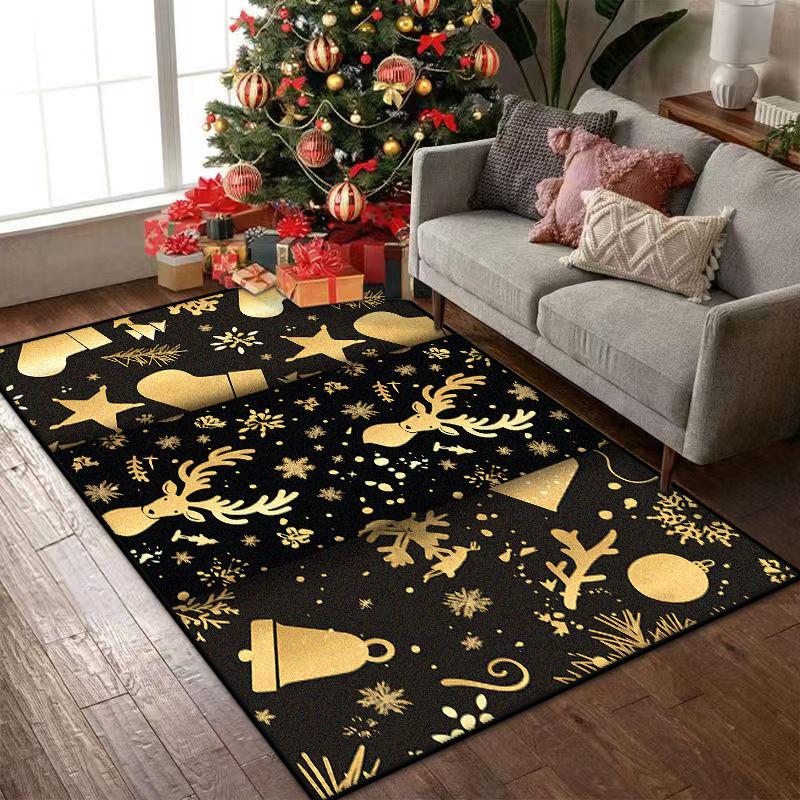 Black Gold Christmas Carpets for Living Room Children Bedroom Rug Soft Fluffy Bedside Rugs Short Plush Large Area Mats Office