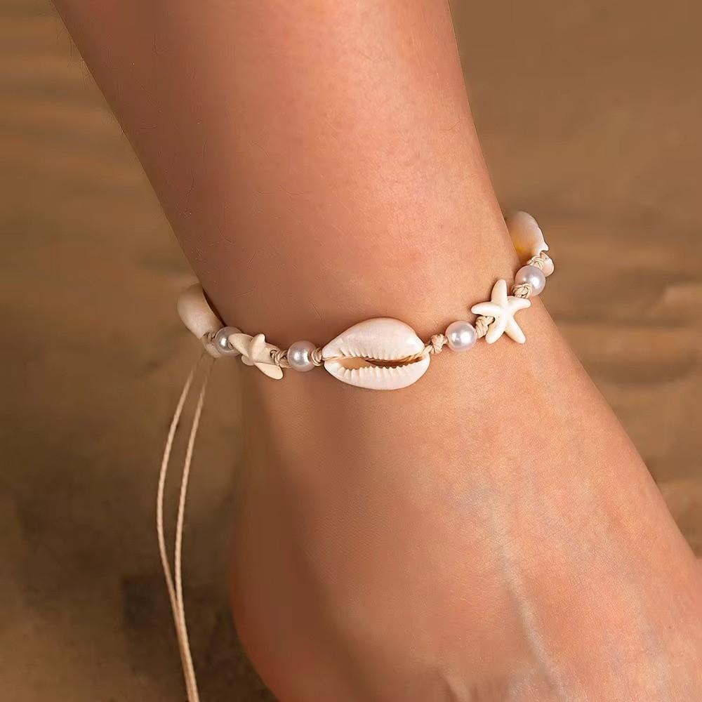 Pearl Starfish Pendant Ankle Handmade Beach Foot Chain Cute Boho Beaded Anklets Beach Vacation