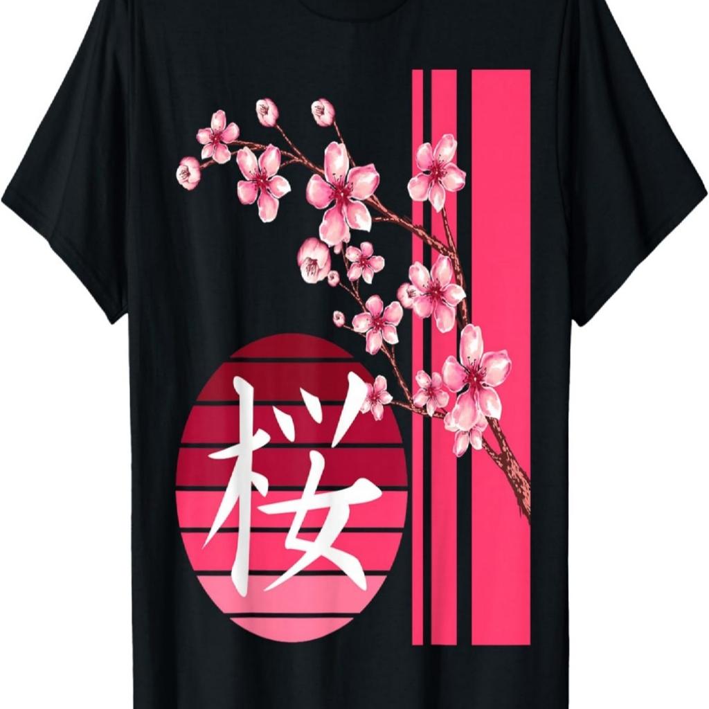 Sakura Flowers Spring Cherry Blossoms Kanji Print T-Shirt
