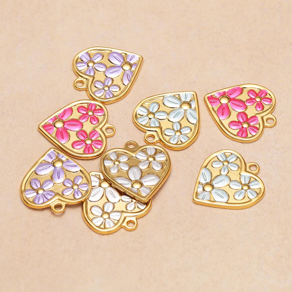 4pcs Stainless Steel Daisy Enamel Flower Hearts Charms for DIY Girls Jewelry Findings Women Necklace Pendants Earrings Making