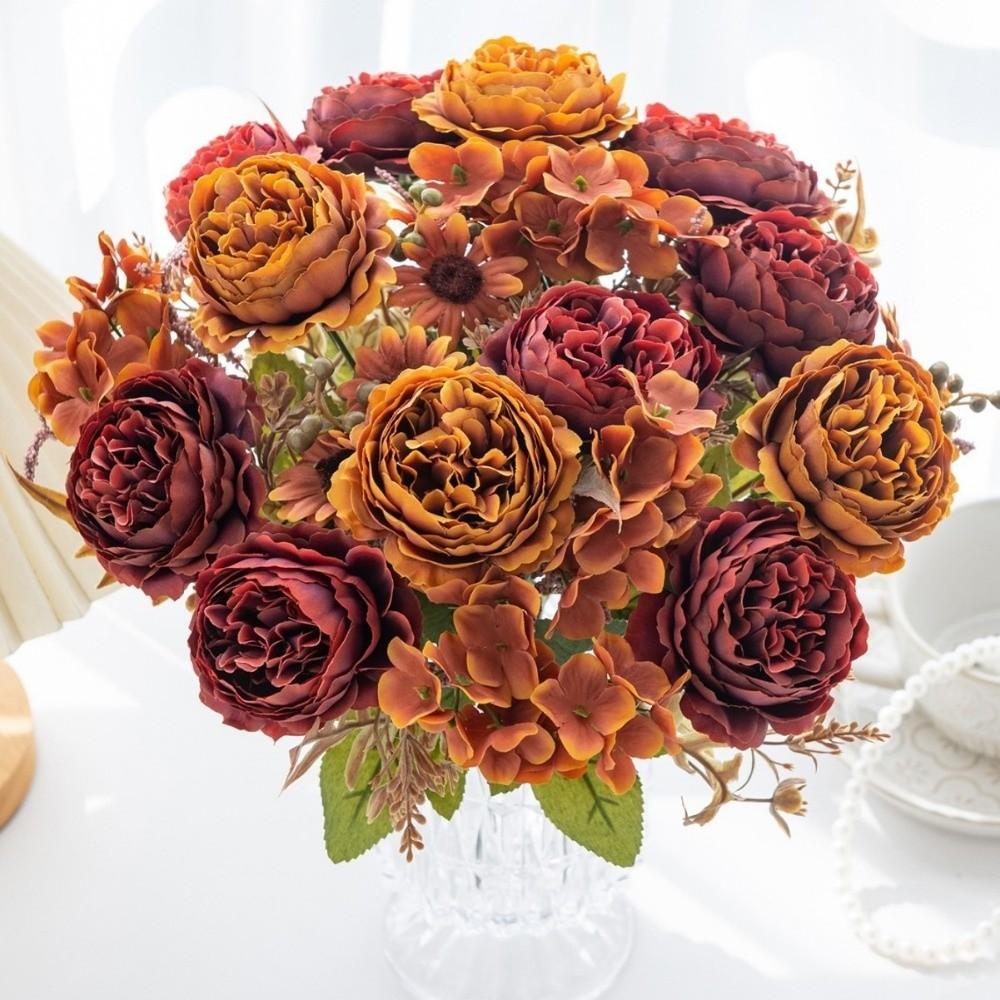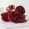 Outdoor Silk Artificial Flowers 5 Heads Bridal Bouquets Simulated Persian Peony Fake Flowers Gifts Box Decor