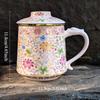 400ml Pink Ceramic Tea Cup Enamel Ribbon Filter Cup High End Household Mug with Lid Jasmine Tea and Green Tea Set Accessories
