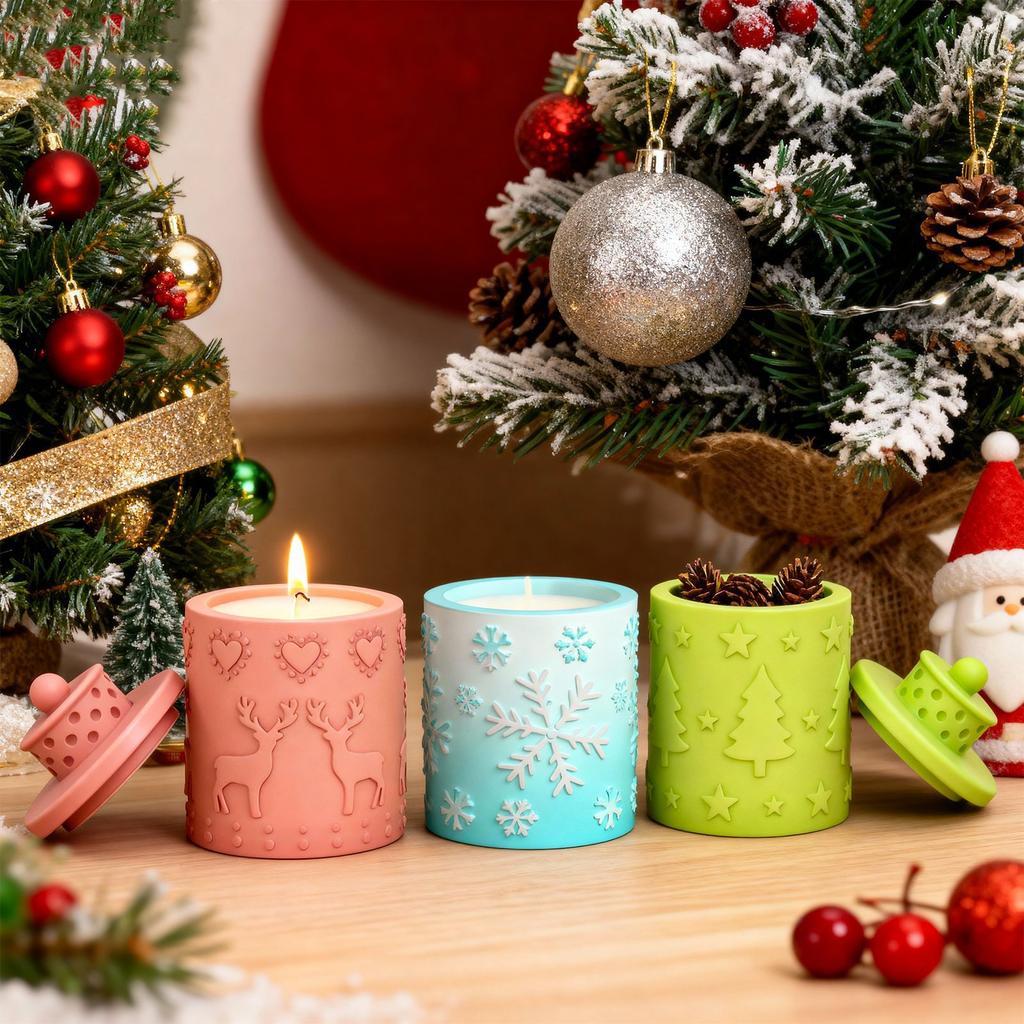 Snowflake Candle Mold White Aromatherapy Plaster Mold Embossed Christmas Mold Silicone For Storage Jar Diy Crafting Home Decor