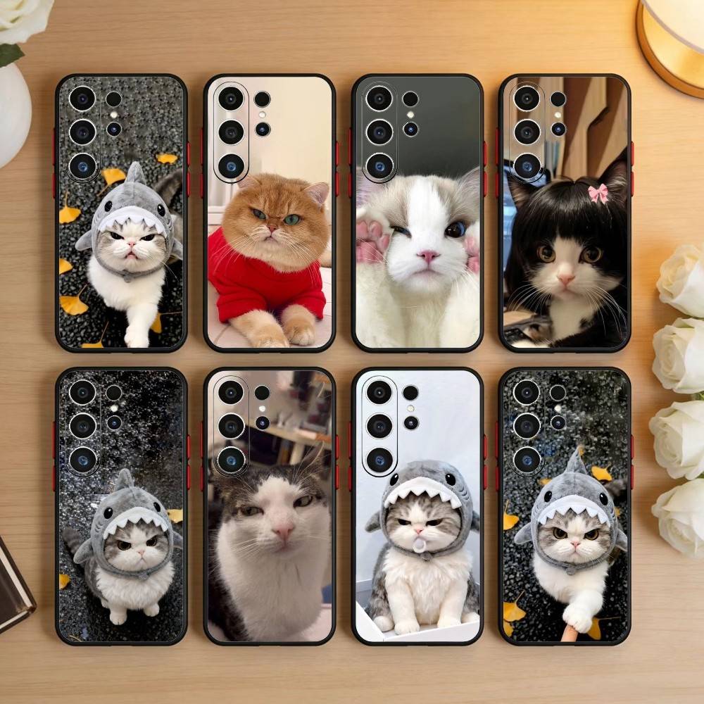 Funny Cute Cat Phone Case For Samsung S26,S25,S24,S23,S22,S30,S21,Ultra,Plus,FE 5G Black Soft Cover