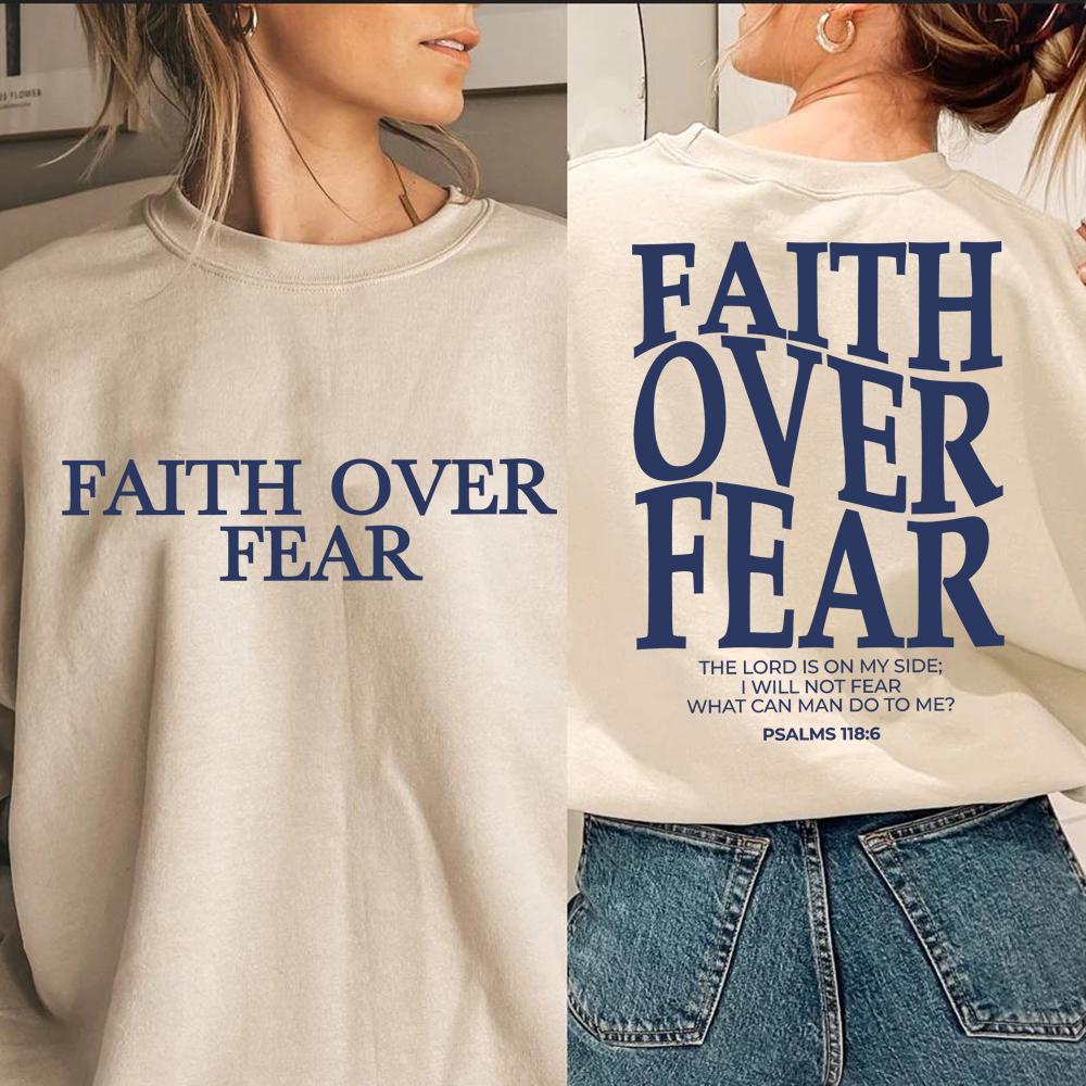 Faith Over Fear Sweatshirt Christian Hoodie Trendy Jumper Bible Verse Sweater Religious Crewneck Sweatshirts Jesus Faith Tops