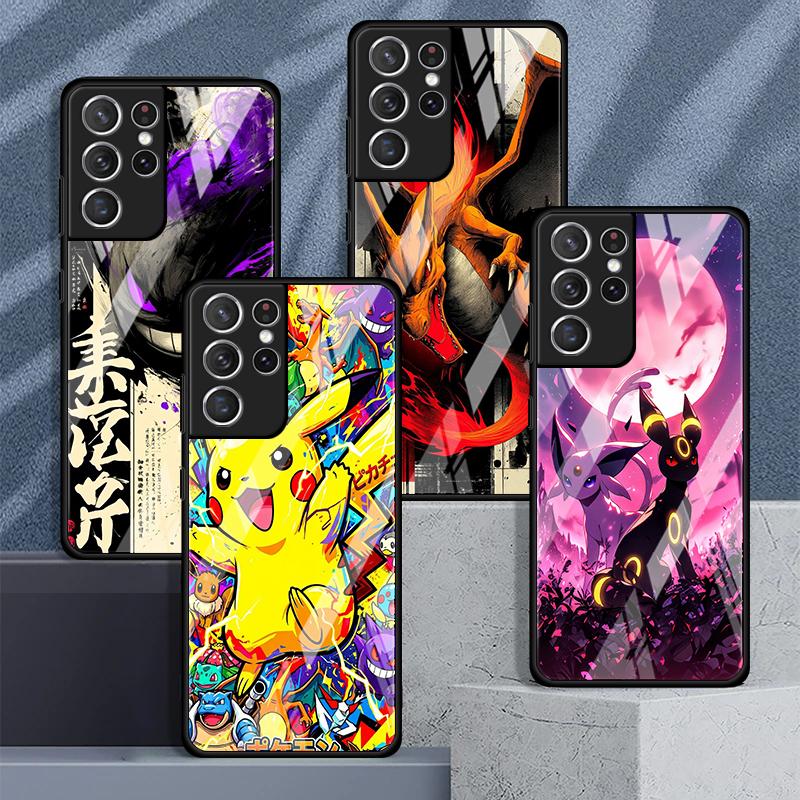 Luxury Phone Cover Glass Case for Samsung Galaxy S26 S25 Ultra S21 S22 S24 S20 FE S25+ S24+ S23+ S23 Plus Hot Anime Pokemon