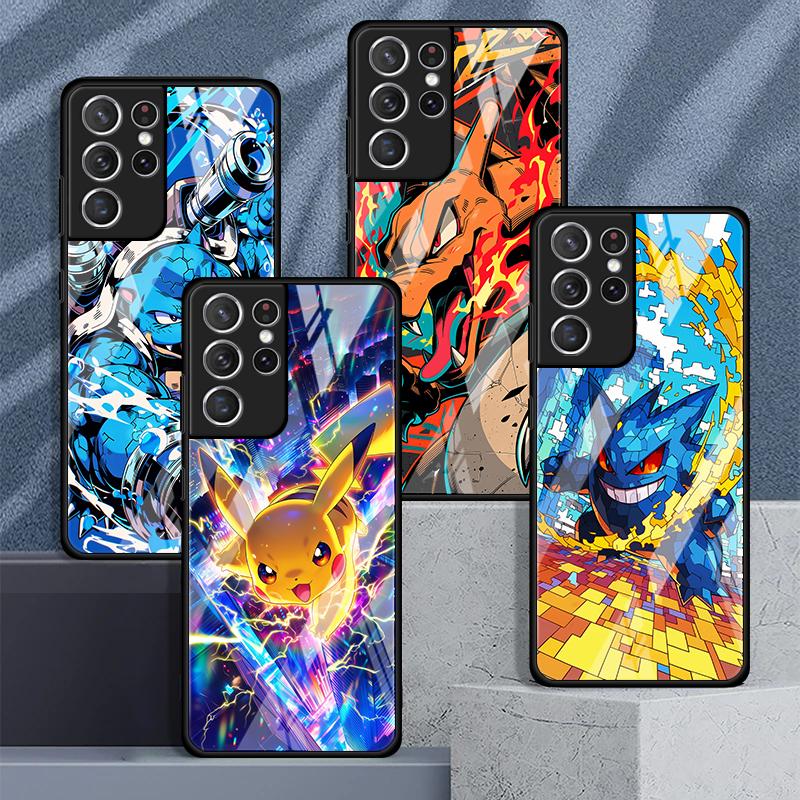 Cute Pikachu Pokemon Glass Case for Samsung Galaxy S26 S25 Ultra S23+ S25+ S24 S22 S20 FE S23 Plus S24+ S21 Luxury Phone Cover