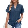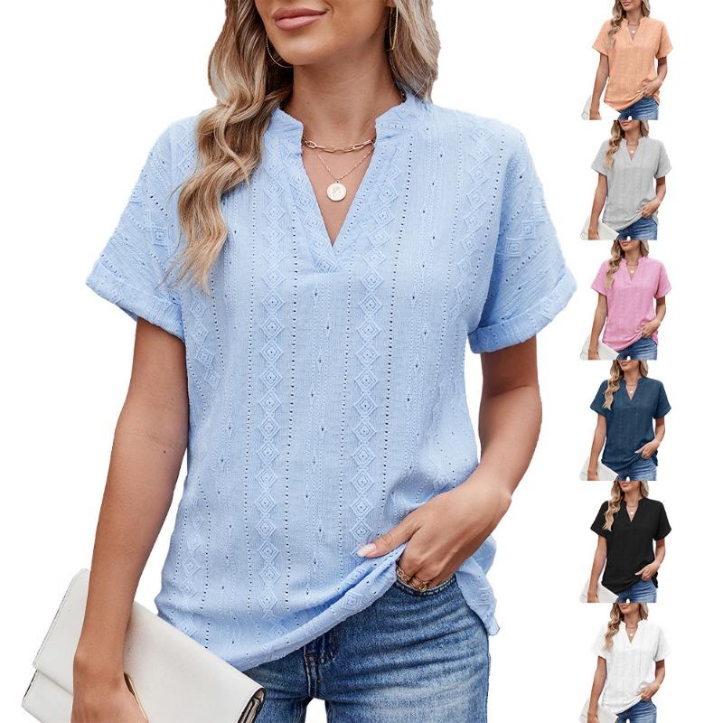 Maglietta casual ampia con scollo a V, tinta unita, da donna, primavera estate