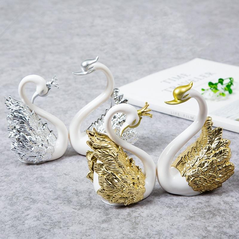2 Pezzi Scultura Cigno d'Amore Ornamento, Mini Bambola Decorazione Torta Nuziale, Statua Regalo per Casa Auto