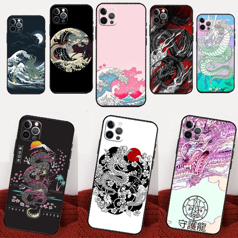 Japanese Wave Anime Dragon Phone Case For Samsung Galaxy S24 Ultra S20 S21 S22 S23 S25 Ultra S9 S10 Plus S25 FE Cover