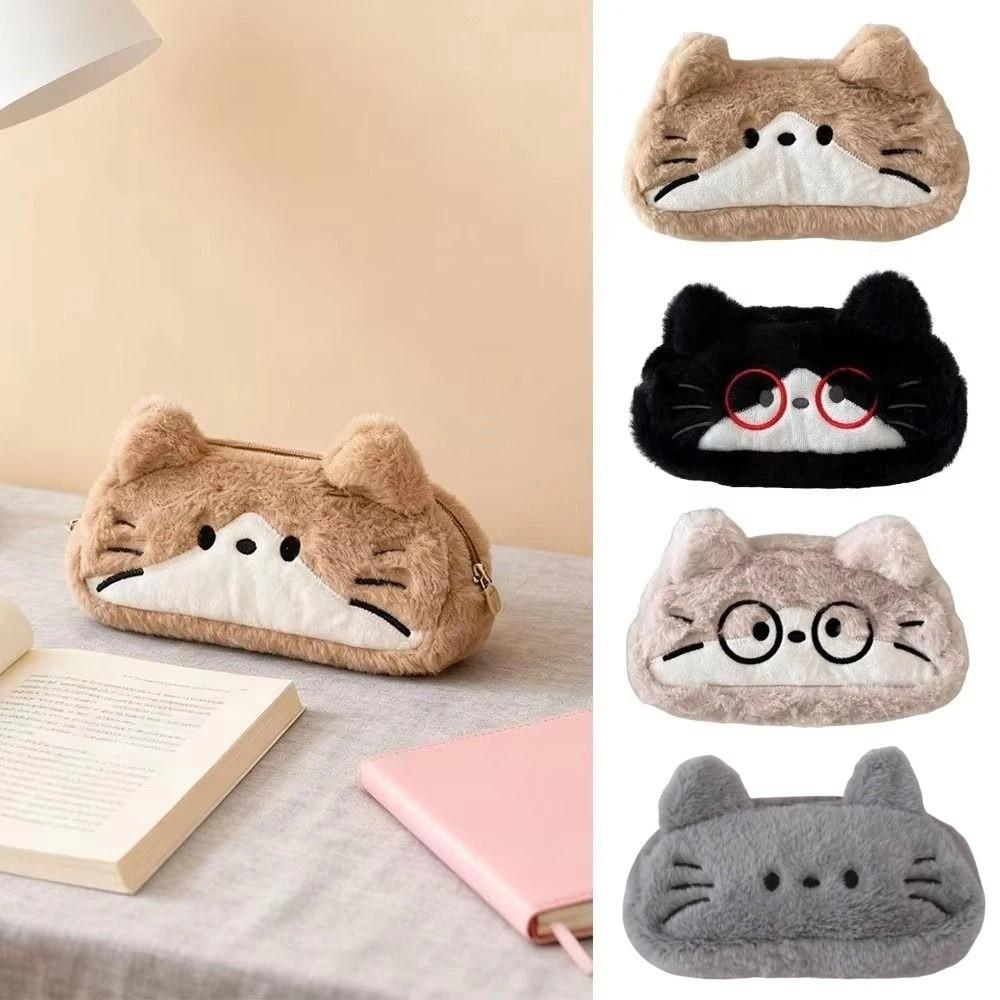 Kawaii Cartoon Pencil Case Cute Stationery Storage Bag Plush Cat Stationer Bag School Supplies