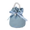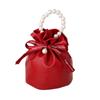 Solid Color PU Drawstring Bag Storage Bag Wedding Candy Bag Pearls Handle Wrist Bag Festival