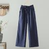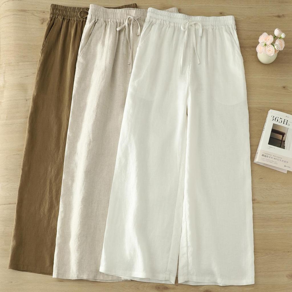 Japanese Pure Linen Women's Wide-Leg Elastic Waist Pants