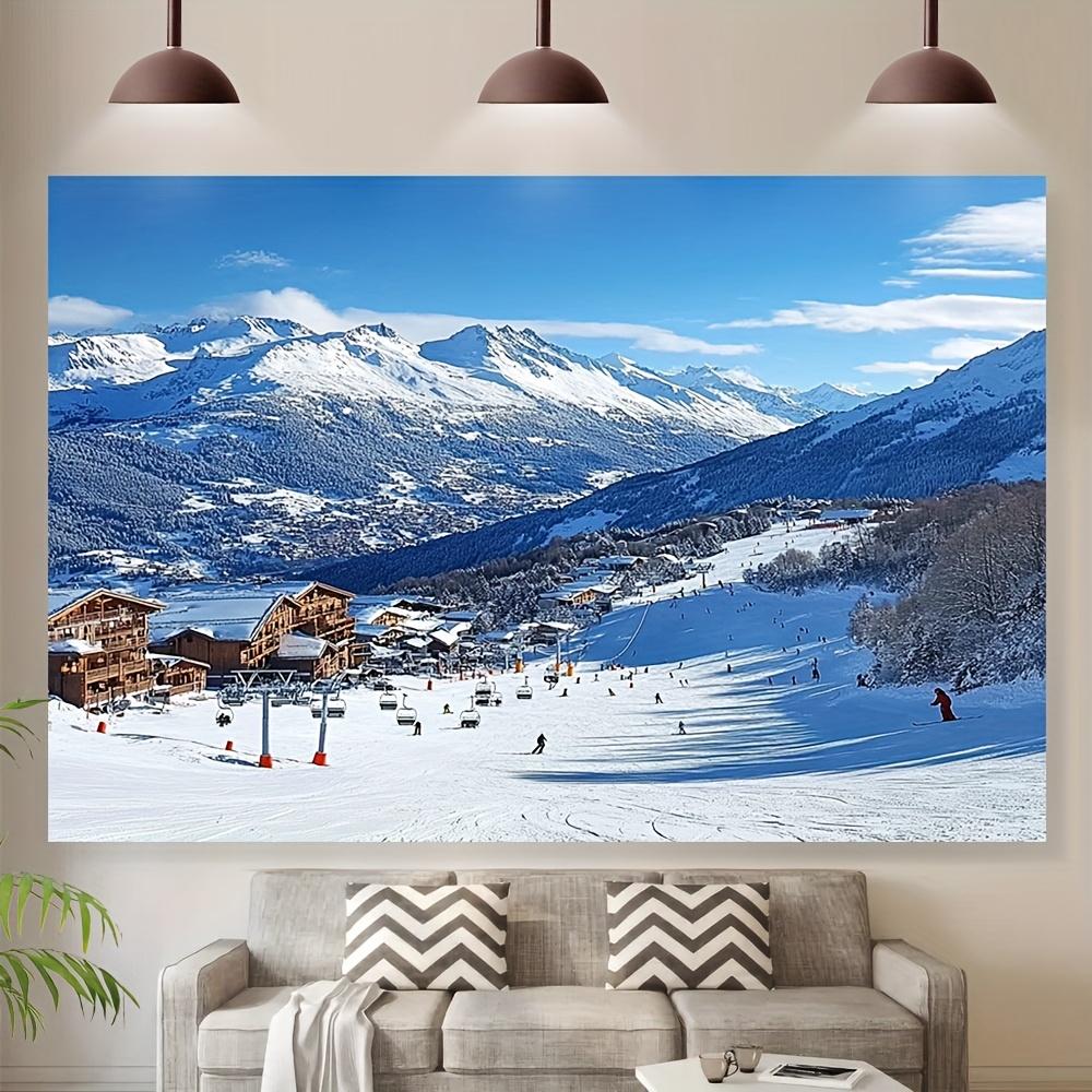 Snowy Mountain Ski Resort Landscape Wall Art Canvas Print for Living Room Winter Scene Home Decor Alpine Village Painting