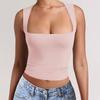 Casual European and American Y2K fitness high elastic sports square collar suspender T-shirt vest women's summer