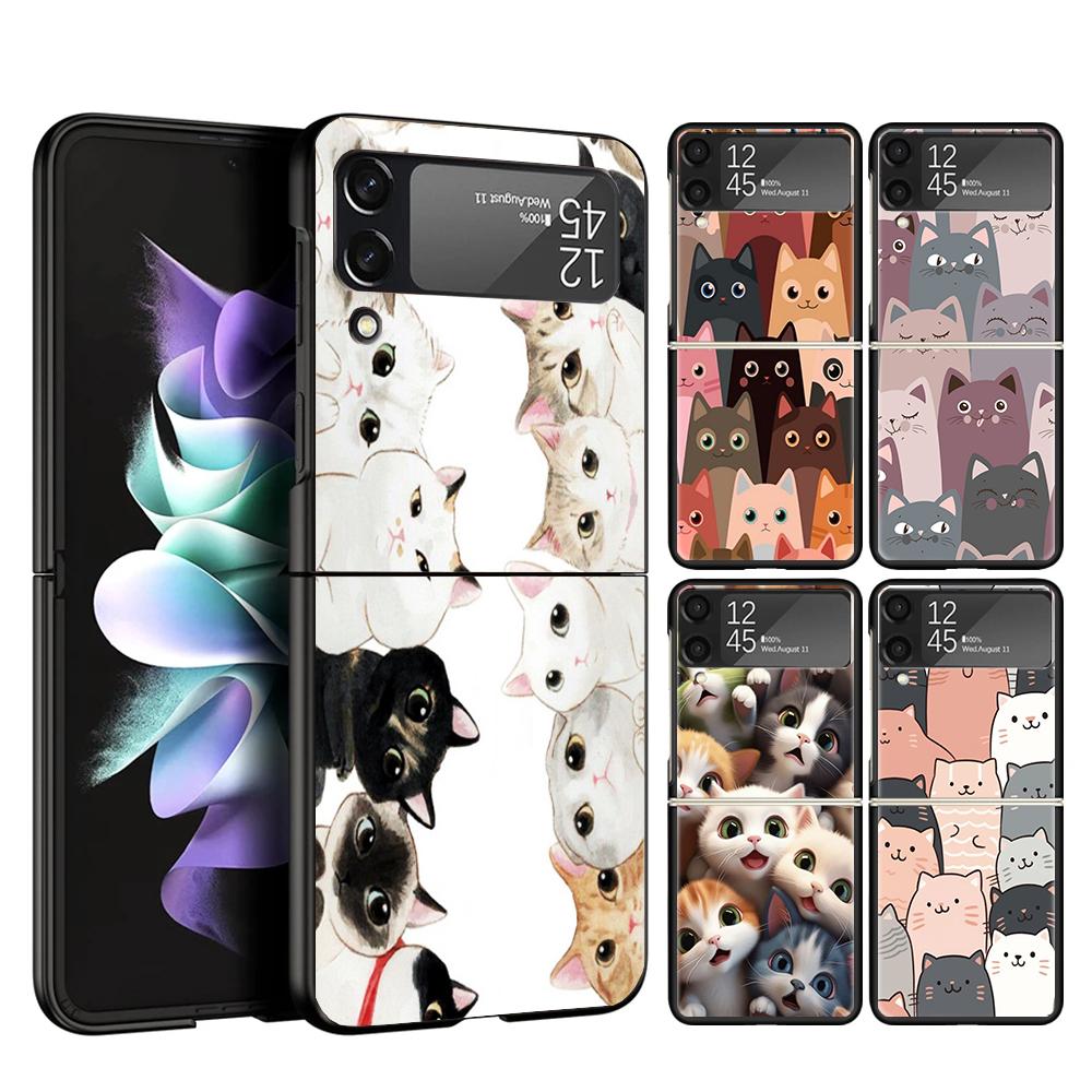 Cartoon Cute Cats Background Case Phone Cover for Samsung Galaxy Z Flip 6 5 4 3 5G ZFlip6 ZFlip5 ZFlip4 ZFlip3 Black Hard Trend