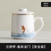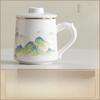 Chinese Style Pattern Tea Filtering and Separation Cup, With Cover White Porcelain Personal Mug, Home Drinkware Ceramic Cup, 1Pc