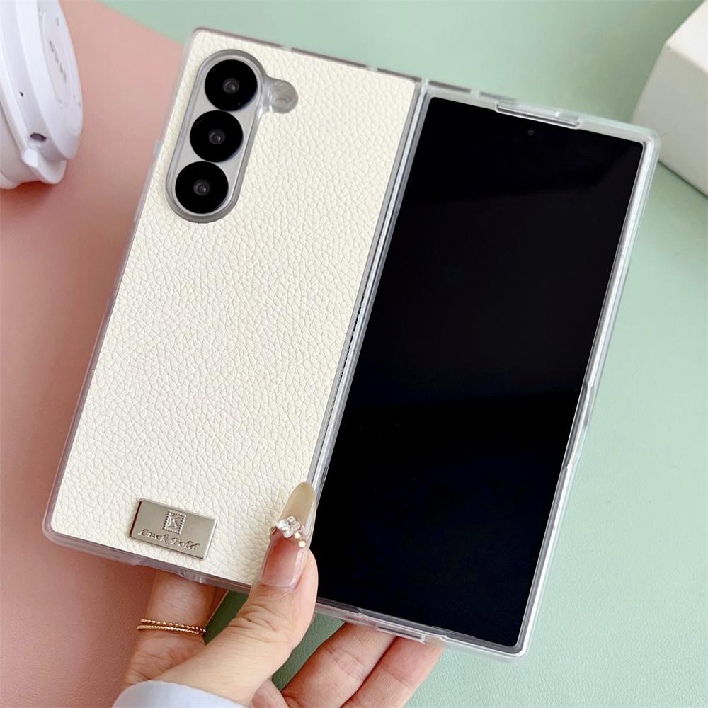 Transparent Edge Phone Case for Samsung Galaxy Z Fold 6 5 4 3 Fold6 Fold5 Fold4 Fold3 PU Leather Hard Shell Protective Cover
