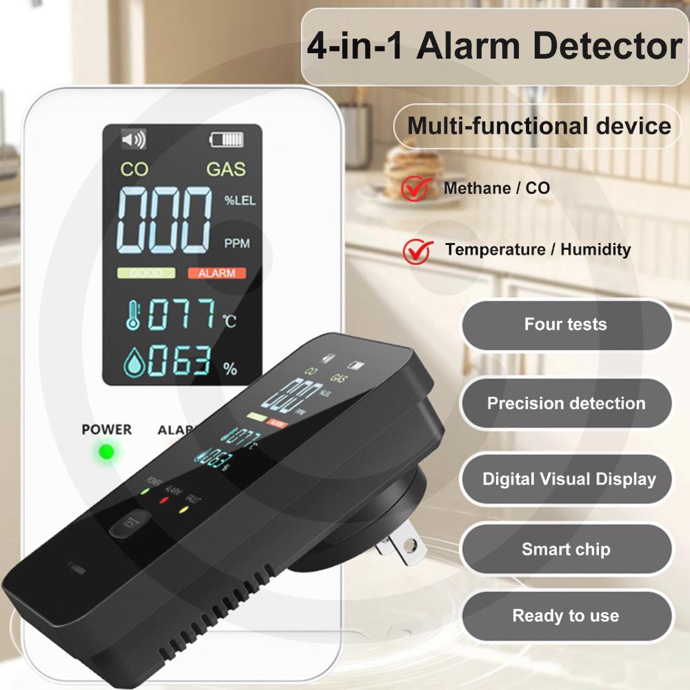 4-in-1 Natural Gas & Carbon Monoxide Detector with HD Display Screen Temperature Humidity Sensor Gas Leak Alarm Device For Home