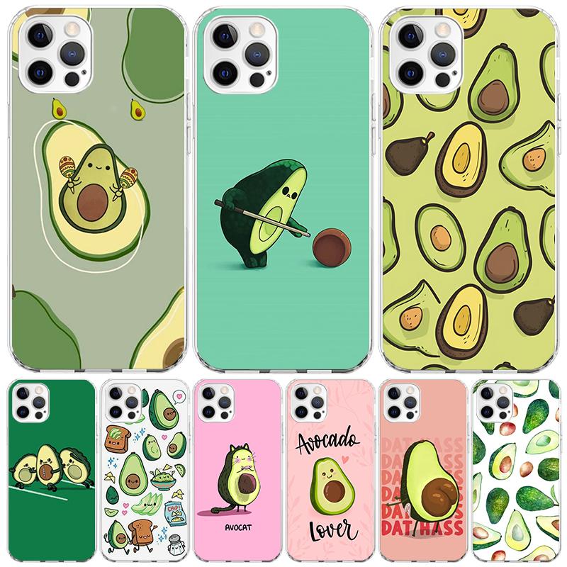 Cartoon Fruit Avocado Case Phone Cover for Apple iphone 16 15 14 13 12 Mini 11 Pro Max 16E X XS XR 7 Plus 8 + SE 2020 Trend Fund