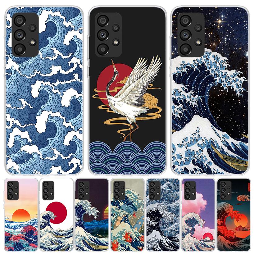 Japanese Style Wave Art Case Phone Cover for Samsung Galaxy A17 A16 A15 A14 A13 A56 A55 A54 A53 A36 A35 A34 A33 A26 A25 A24 A23