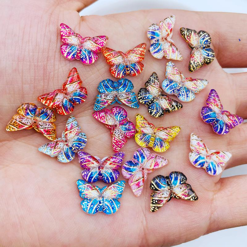 40 Pcs Resin Cute Cartoon Mini Colorful Beautiful Butterfly Flat Back Rhinestone Appliques Diy Wedding Scrapbook Craft A114