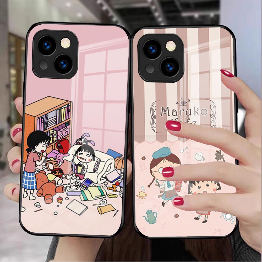 Anime Maruko-chan Phone Case For IPhone 17 Pro Max 16 15 14 Pro Max 13 11 X Xs Xr 8 7Plus Glass Cover