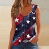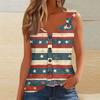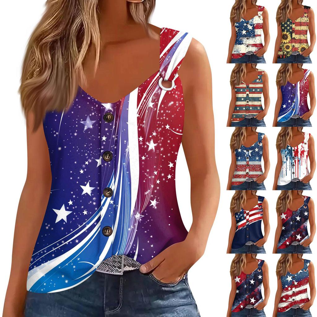 Women's Fashion Casual Loose Sleeveless Buttoned V-Neck Independence Day Printed T-Shirt Top