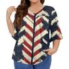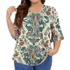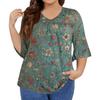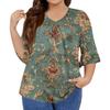 Women's Fashion Casual Retro Printed V-Neck Seven-Point Sleeve Ruffle Sleeve T-Shirt Tops Plus Size Women's