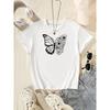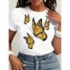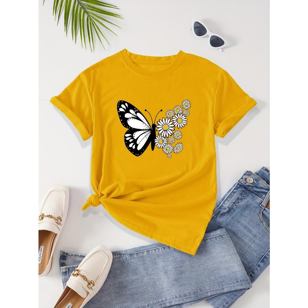 Women Cotton Short Sleeves T-shirts Butterfly Daisy Women's Tee Floral Butterfly Graphic Casual Yellow Top