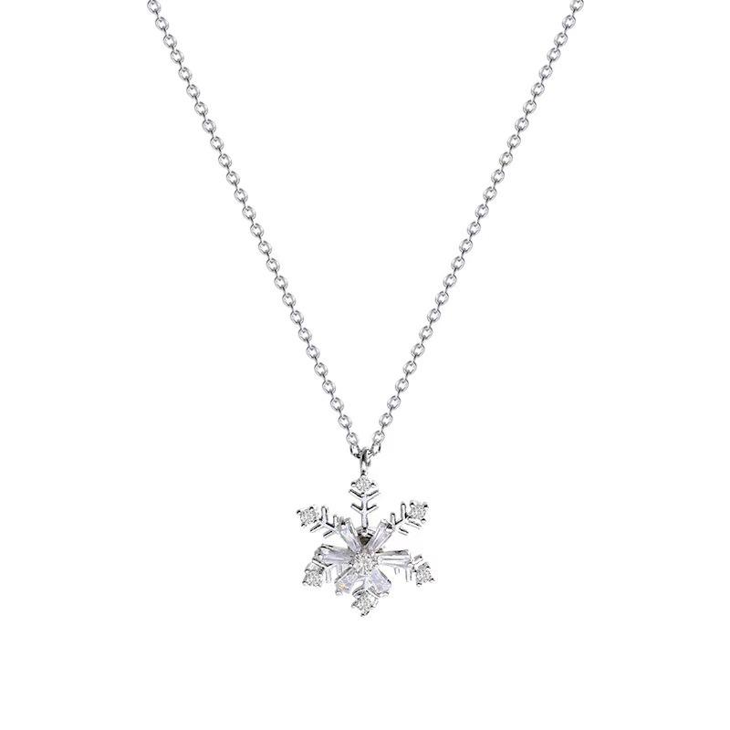 Rotatable snowflake zircon necklace women's high-end sense versatile collarbone chain niche design sense popular accessories