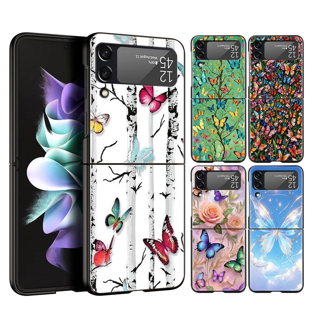 Butterfly Design Hard PC Phone Case For Samsung Galaxy Z Flip 7 6 5 4 Black Cover For Galaxy Z Flip 3 Foldable Fundas Shell Bags