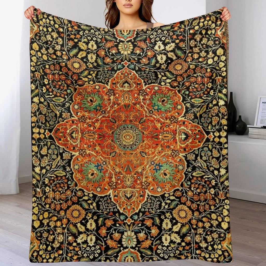 Antique Persian Mohtashem Kashan Rug Print Throw Blanket Stylish Couch Blanket for Home Living Room